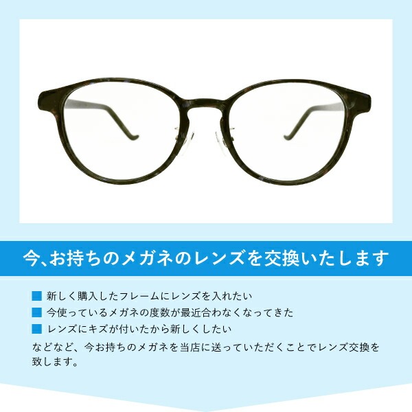 ※レンズ交換に際してはツーポイント(ふちなし)・高額なフレームや特殊素材(べっ甲、石付き、天然素材、特殊素材)、オークリーのフレーム、ハイカーブレンズの加工、